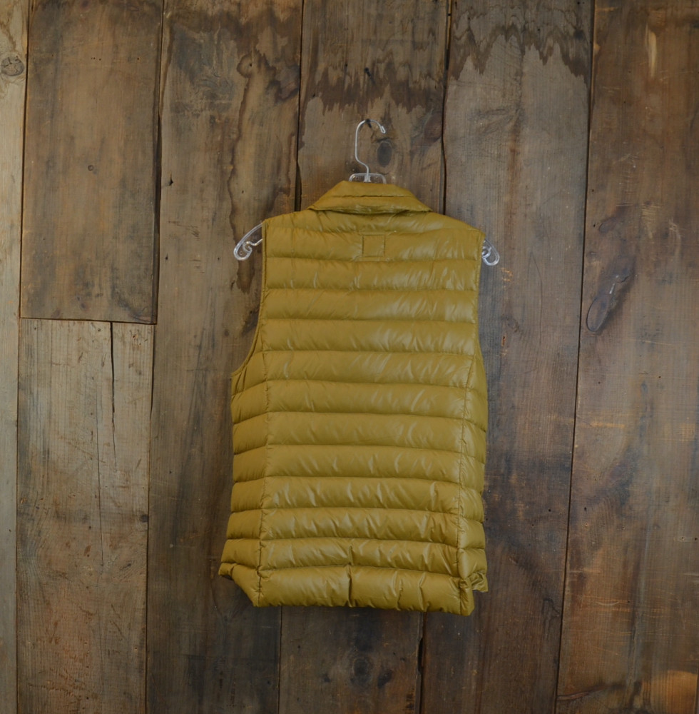 Gap women’s lightweight puffer vest insulated with down. I don’t think the camera did a great job capturing the true color of this jacket, but it’s in a beige-ish/golden color. The vest is no longer made anymore, but I don’t know what year it’s from. Gap doesn’t even make down vests anymore, but their synthetic ones go for about $79 on their website. The vest might as well be new because I can’t find any flaws signs or wear.